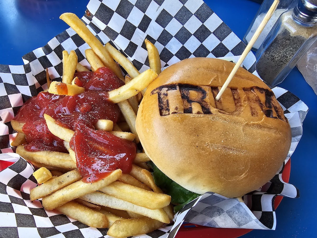 Despite if you like trump or not, hands down best burger in Bellville! Thick and juicy hamburger patties, sweet buns, and a variety of toppings! The fries are also really good and seasoned. Worth it!