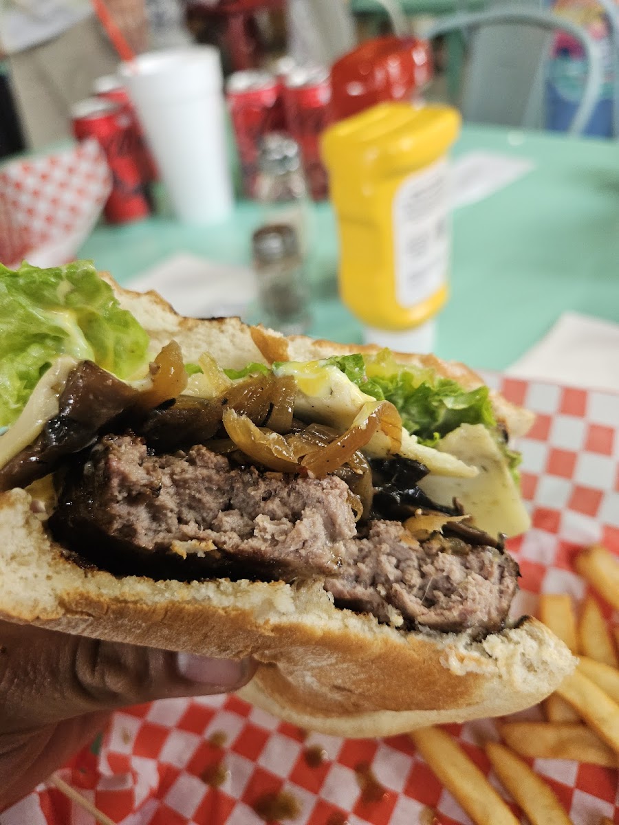 Amazing food. 10/10 will eat here again for absolute pleasure. My burger was made perfectly and so was my spouse burger. I have to say it was close to being the best mushroom and Swiss I’ve had in a long time!!! Definitely recommend this place!!